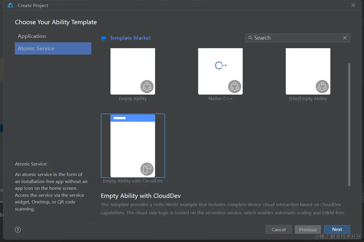 使用元服务类型的端云一体化模板