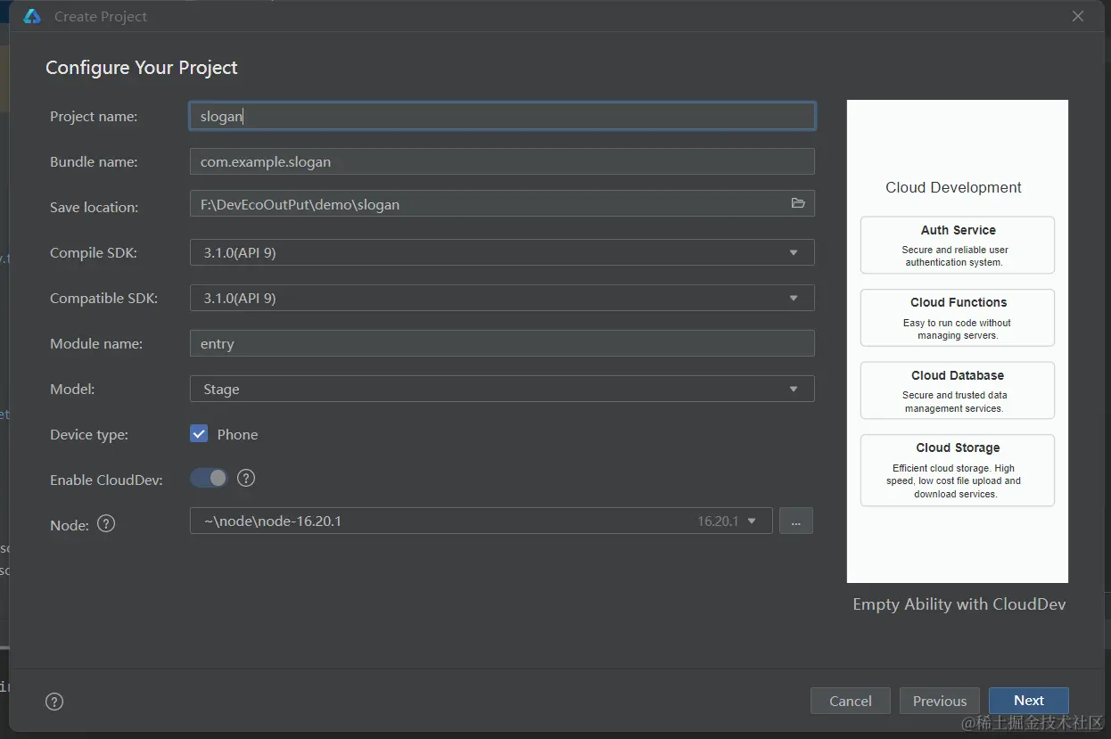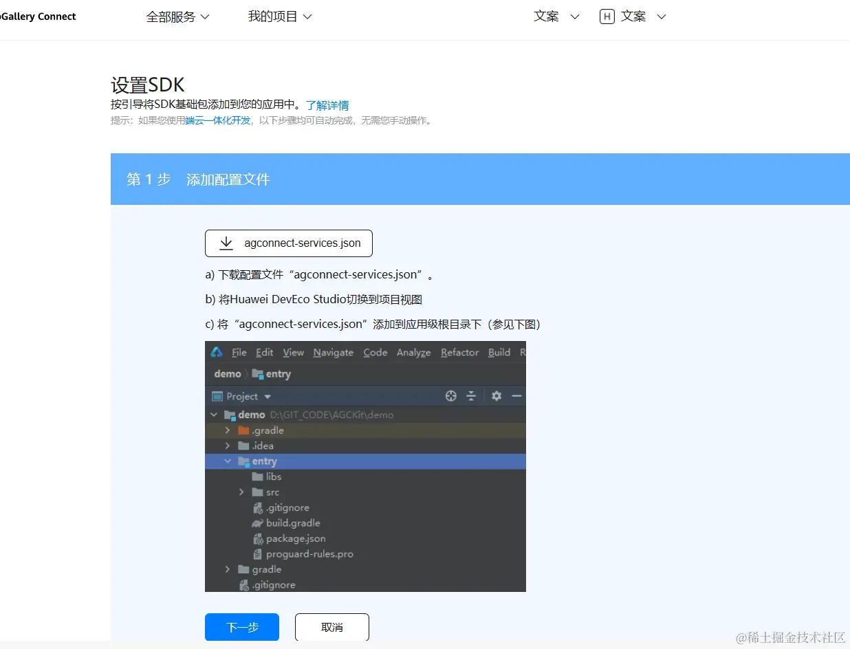 - 保存应用配置后会出现一个设置SDK的界面,但他提供的配置方案其实不适用于API9,所以不用管他,直接点取消退出。
