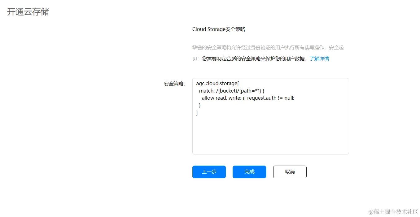 - 开通云存储服务(设置好云存储的名称与安全配置)