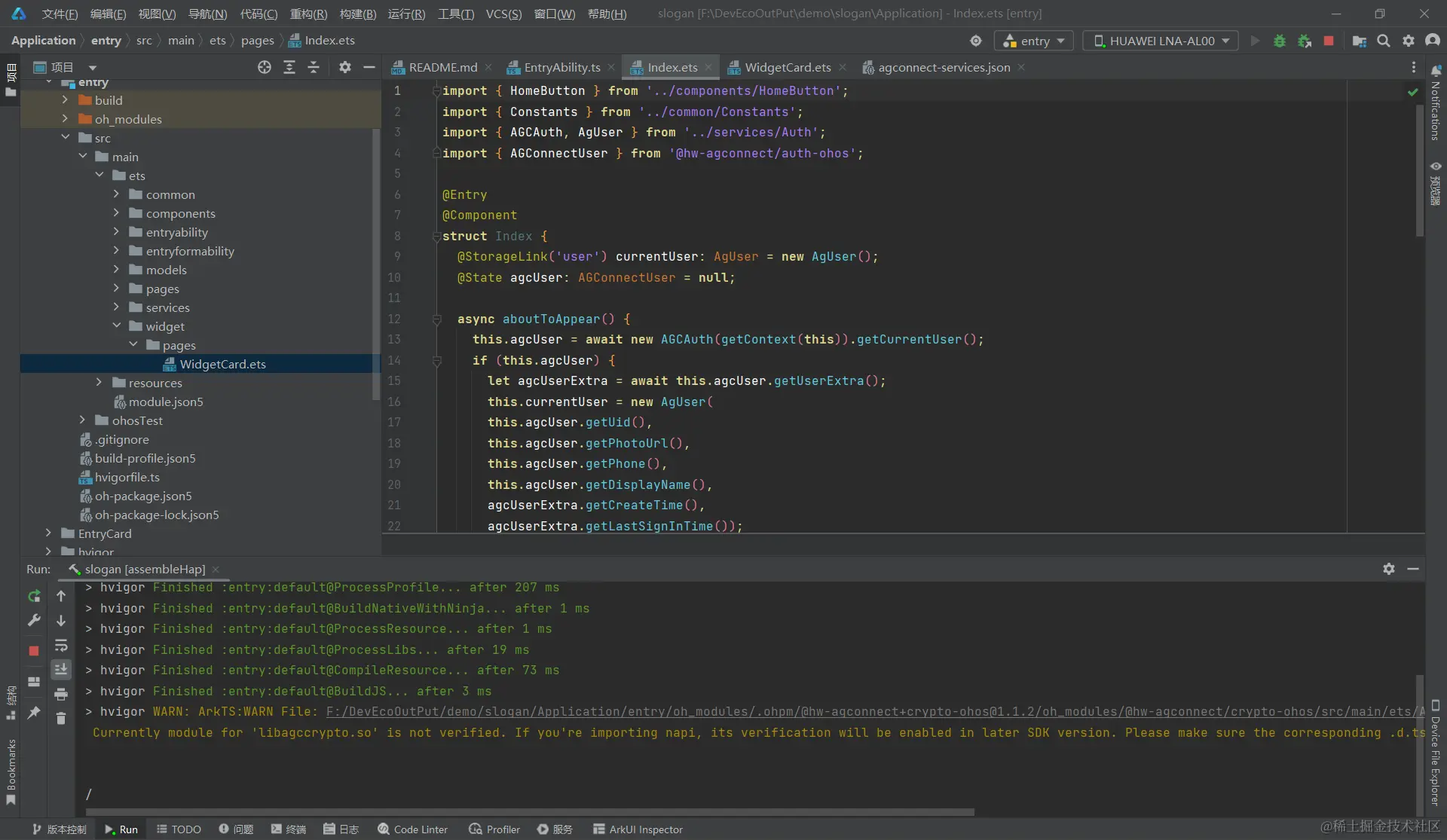 DevEco会自动检索同一个开发者账号下相同包名的应用信息,选择我们之前在AGC管理中心新建的项目后点击finish