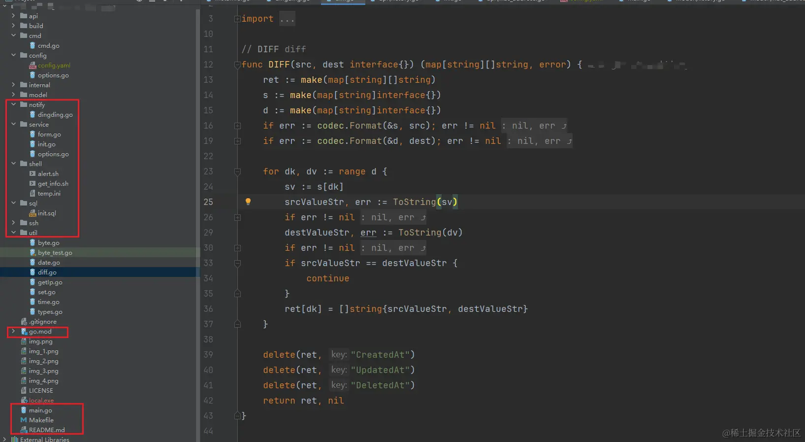 - util为工具包目录,提供时间戳转换、结构体差异对比等必要功能
