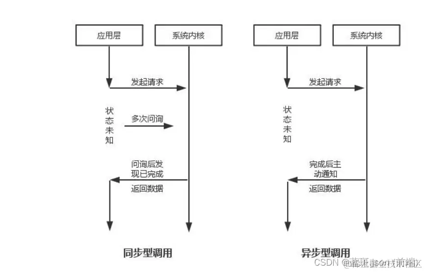 如果是请求方主动发起的,一直在等待应答结果(同步阻塞),或者可以先去处理其他的事情,但要不断轮询查看发起的请求是否有应答结果(同步非阻塞 )因为不管如何都要发起方主动获取消息结果,所以形式上还是同步操作。