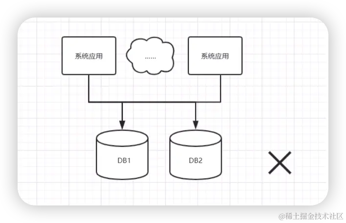 但是,随着访问量的升高,所有的压力都将集中到数据库这- -层。那么数据库这一层,我们要怎么处理呢?能不能像系统应用层那样进行扩展呢?答案当然时否定的,我们想象一下,如果数据库层也像系统应用层那样,进行横向扩展,如图: