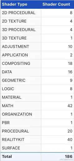 目前 visionOS 提供了 186 个 Shader Node。