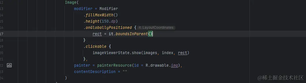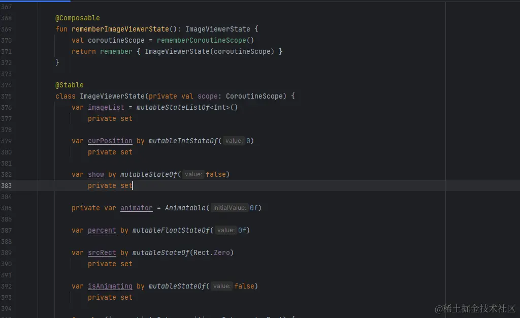imageViewerState 是自己定义的一个状态类,用于保存大图查看界面的一些状态,使用state注解标记可以减少一些不必要的重组。