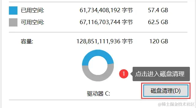 步骤2:选择 【属性】,在【常规】 选项卡下,点击【磁盘清理】 ;