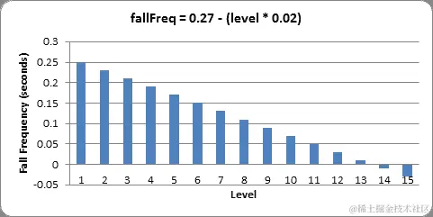 我们还可以制作一个图表,显示游戏每个级别下方块下落的速度: