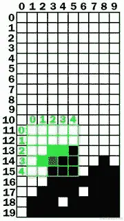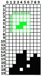 在左侧的板上,下落方块的盒子位于以下“方块”坐标: