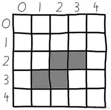 当我们将(2,3)坐标(方块在板上的坐标)添加到这些坐标时,看起来是这样的: