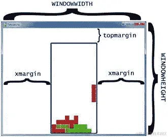 'x'键的值始终设置为板的中间(还考虑到方块本身的宽度,这是从我们的TEMPLATEWIDTH常量中找到的)。'y'键的值始终设置为-2,以使其略高于板。(板的顶行是第 0 行。)
