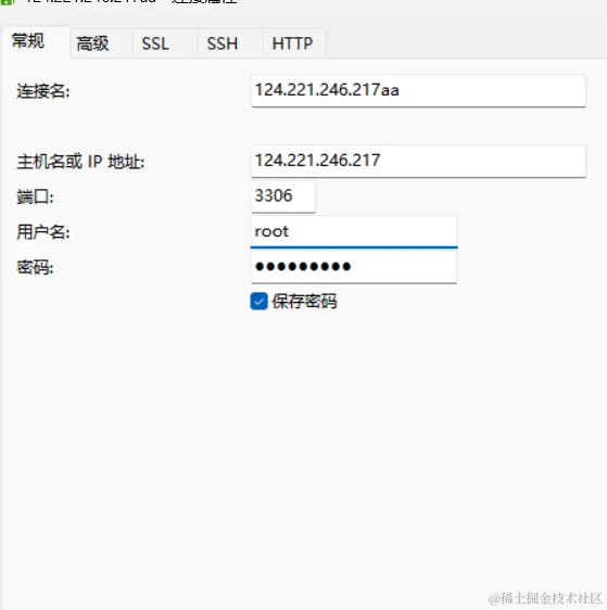 这个时候我们就可以进行数据库连接了,我用的是云服务器,可以直接通过ip密码来连接了,账号是默认的root
