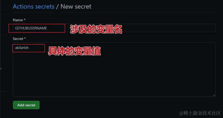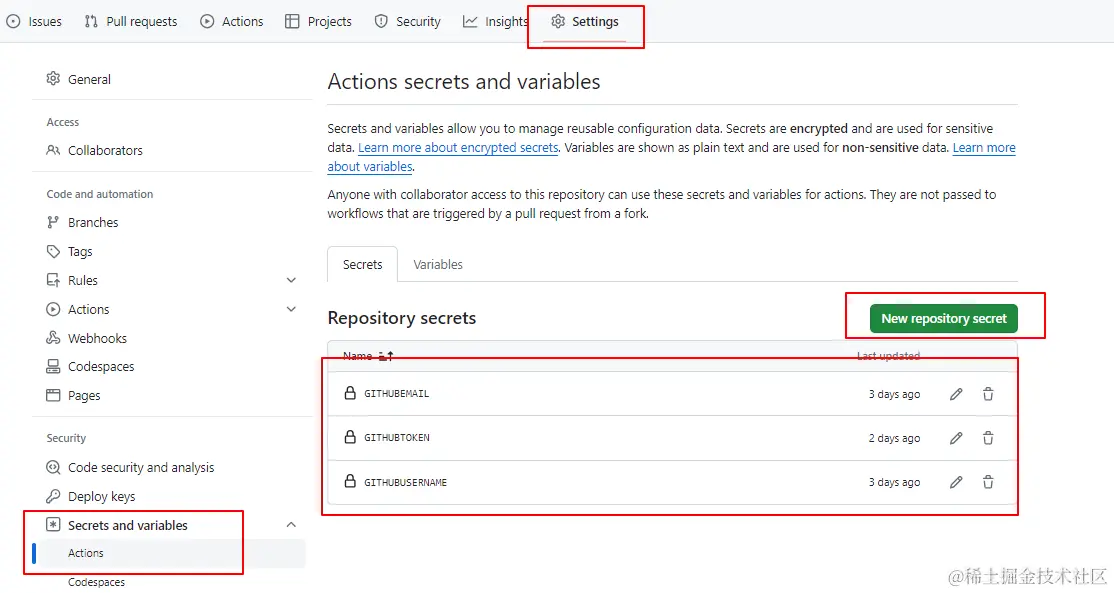 密钥名称不得以 GITHUB_ 前缀开头。