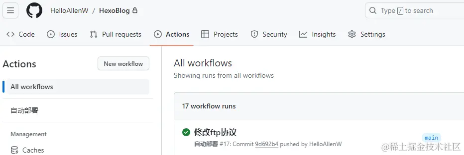 这里可能有同学要问,github action有啥用?这不就是从hexo cl && hexo g && hexo s的三件套变成了git add .,git commit -m "commit content",git push三件套吗?