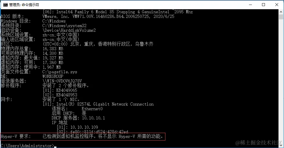在命令行窗口或者PowerShell中,输入命令Systeminfo.exe,查看Hyper-v要求的部分。详细内容可查看官网说明。