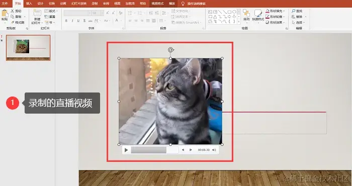 步骤3:录制完成后,视频将自动插入到PPT中,您可以预览录制内容,并选择是否保存到其它位置。