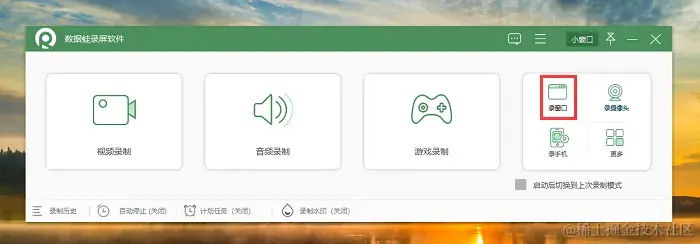 步骤1:下载并安装数据蛙录屏软件,根据提示安装成功后,打开软件进入到程序界面上,录制直播推荐使用 “录窗口” 功能。