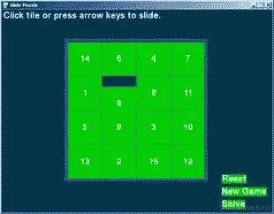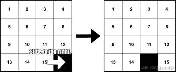 棋盘是一个 4x4 的网格,有 15 个方块(从左到右编号为 1 到 15)和一个空白格。方块最初以随机位置开始,玩家必须将方块滑动到它们的原始顺序。