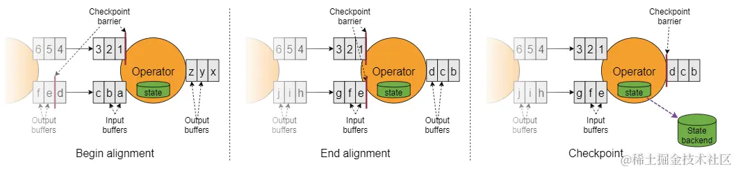 Barrier 只有在需要提供精确一次的语义保证时需要进行对齐(Barrier alignment)。如果不需要这种语义,可以通过配置 CheckpointingMode.AT_LEAST_ONCE 关闭 Barrier 对齐来提高性能。