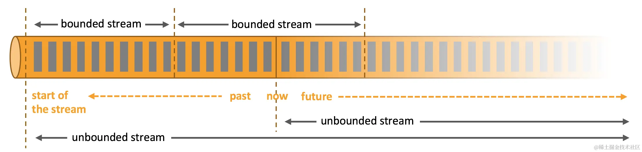 在自然环境中,数据的产生原本就是流式的。无论是来自 Web 服务器的事件数据,证券交易所的交易数据,还是来自工厂车间机器上的传感器数据,其数据都是流式的。但是当你分析数据时,可以围绕 有界流(bounded)或 无界流(unbounded)两种模型来组织处理数据,当然,选择不同的模型,程序的执行和处理方式也都会不同。