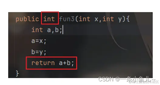 之前举例的方法使用无返回值为void ,现在是int 就要return对应的返回值类型 ,这里返回x+y的值;