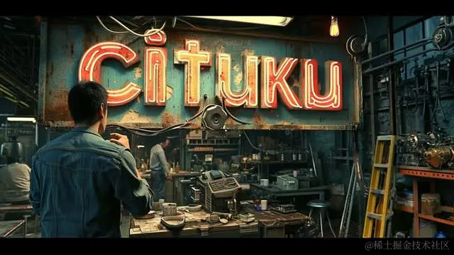 一个人用机器创造的cituku文字,风格融合了迷幻过载、Vray跟踪、Jon Foster、工业灵感、机械设计、Wim Wenders、暗黑比例。