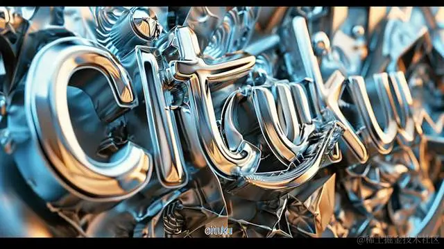 cituku封面艺术,风格融合了在Cinema4D中渲染、大胆的书法标记、Gadgetpunk、镀铬、照片般逼真的精度、商标、金属。
