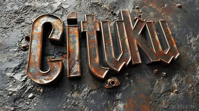 金属艺术3D字母cituku带有机械主题,风格融合了爆炸性色素、铅笔蒸汽朋克、棕色和青铜、艾未未、凹版印刷、高质量照片、虚幻引擎5。