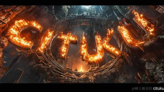 现代字母cituku内有火焰,风格融合了奇幻的机器、哥特未来主义、CryEngine、对称设计、Frostpunk、HDR,让人难以置信的美丽。