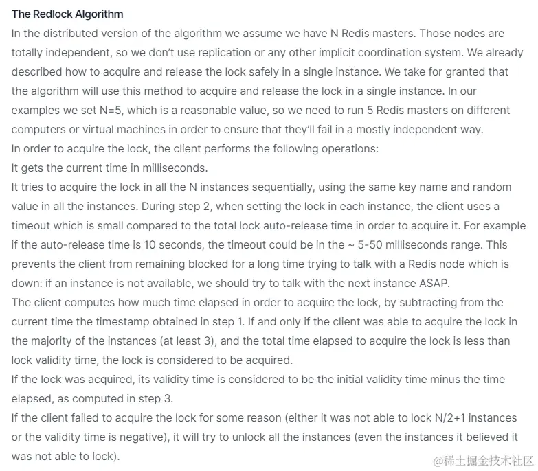RedLock一般也不推荐使用,毕竟也不是100%的安全,而且使用这个锁需要的Redis实例资源也是比较多的,如果有些场景需要非常强的一致性可以考虑使用zookeeper。