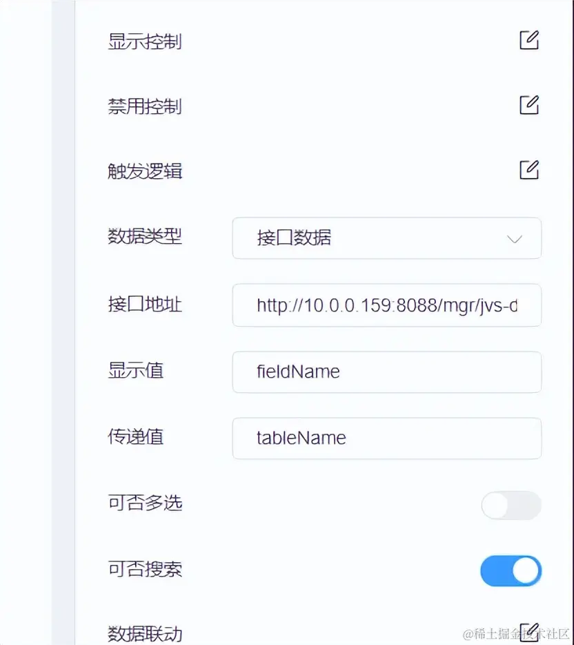 在理解这些基本概念之后,我们将通过一个具体的示例来展示JVS低代码如何使用API接口数据配置下拉框组件。这个示例将帮助大家更好地理解如何在实际开发中应用这些概念。