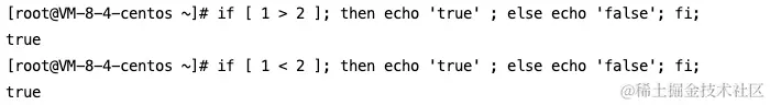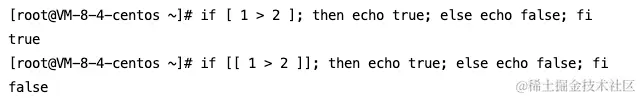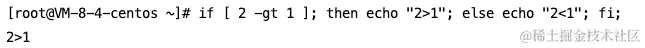 if [ 1 > 2 ]...”中,[ 1 > 2 ]为真。这是因为这里[]实际判断的是:“将指令1的输出重定向到文件2中”。