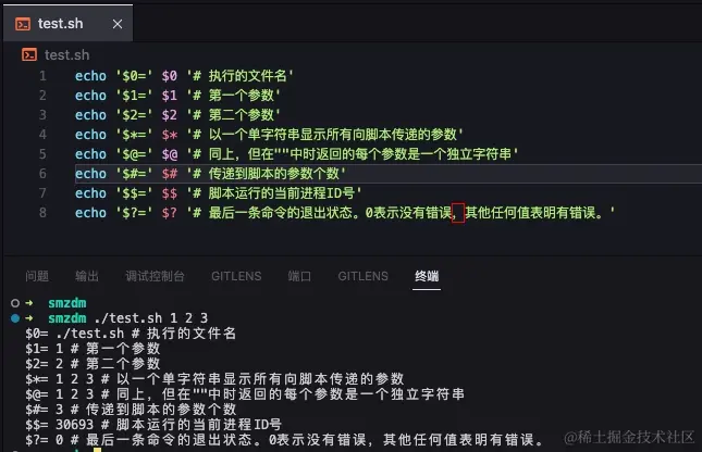 函数或者.sh文件执行时,命令后面可以输入参数,例如:执行test.sh文件;获取传参则需要通过一些特殊符号。