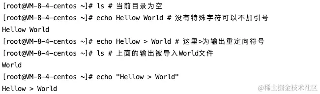 echo后面的字符串可以不加单、双引号,但是需要当心特殊字符的转义。例如,重定向符号>。