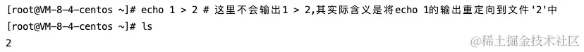 例句1中,1 > 2的含义是:“将命令**1**的输出重定向到名为 “2” 的文件中。”