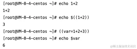 shell默认都是字符串,直接写echo 1+2是不行的,如果想要进行算术运算需要特定的语法,例如:(()),``或者$()等。