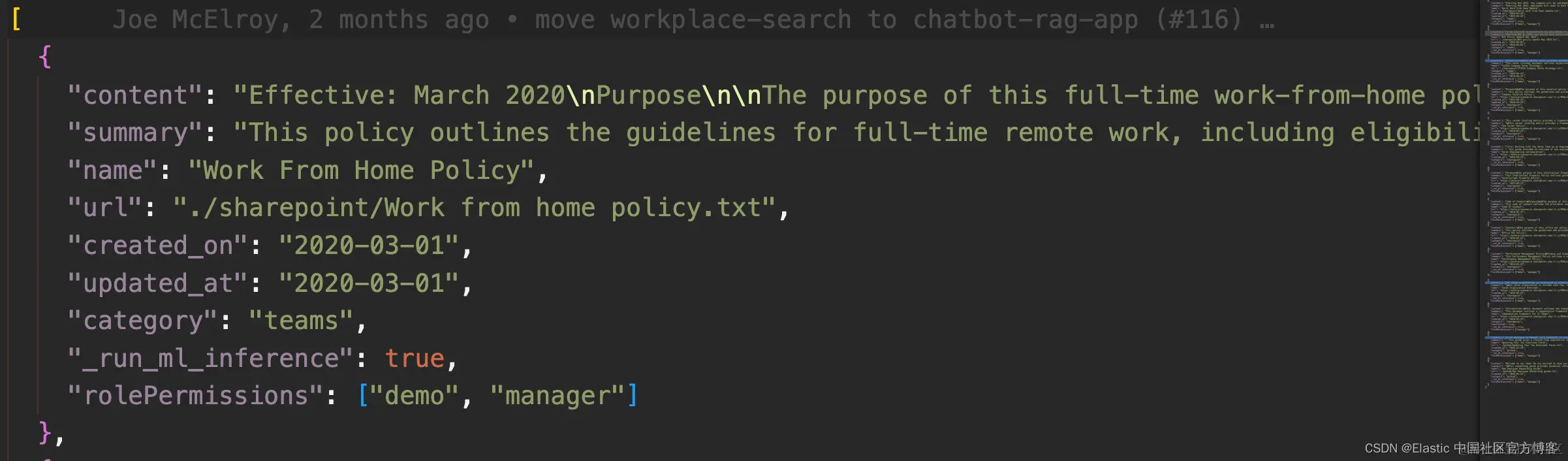 文档存储在 Elasticsearch 索引中。 索引的名称由 ES_INDEX 环境变量控制,该变量在 .env 文件中定义。 默认情况下,该索引的名称是 workplace-app-docs。