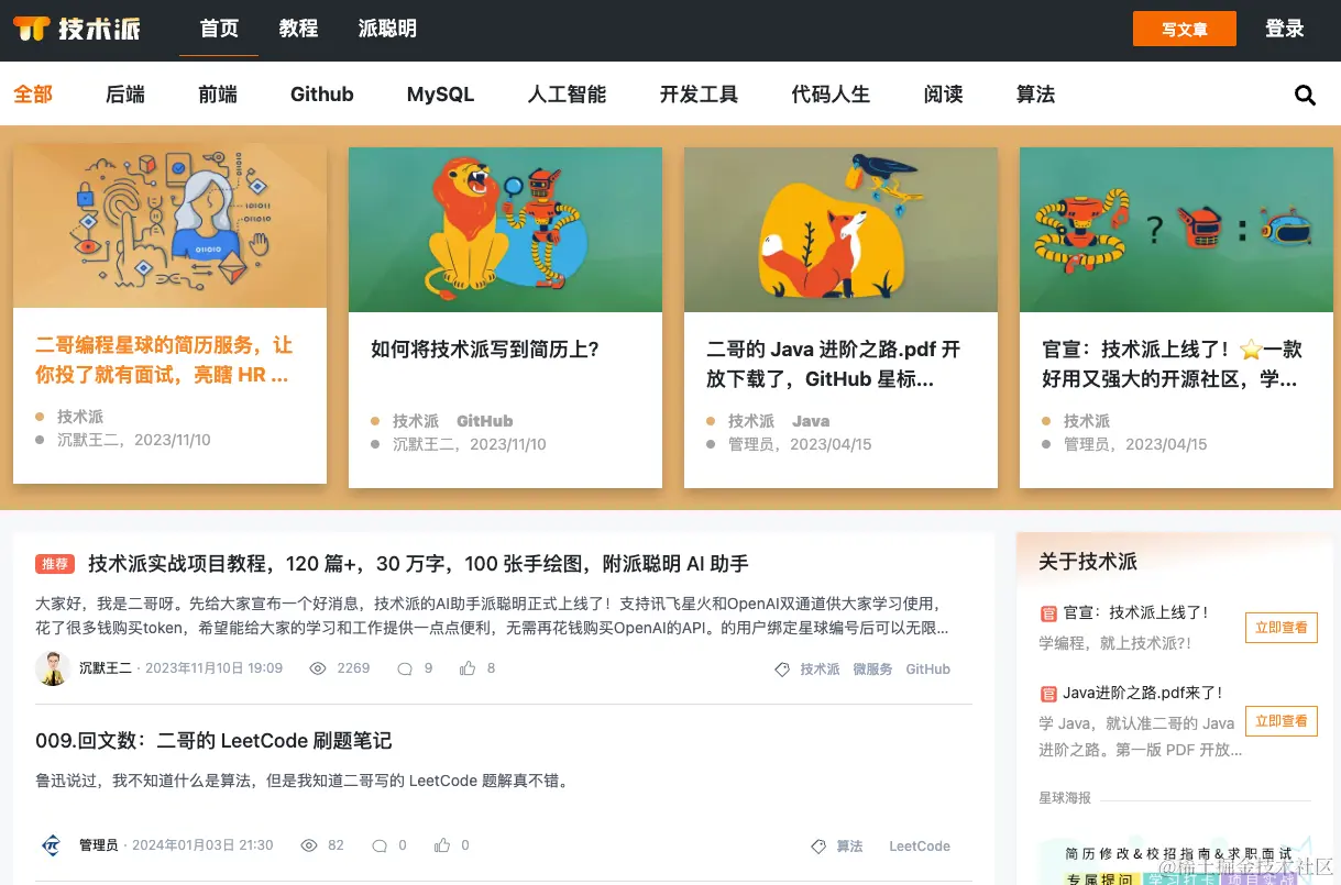 所以可以这么说,技术派网站,是我真正做的第一个产品。