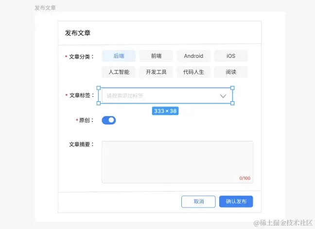 记得我用 figma 画图时,一个小小的发布文章界面,我画了 2 个多小时(主要是自己不会玩,边画边摸索)。