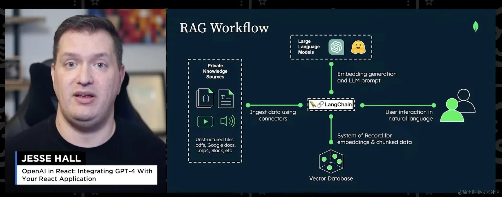 本文讨论了在React应用中集成人工智能技术的方法和技术。作者建议使用Next.js作为技术栈的基础,并与OpenAI的Chat GPT和GPT进行连接。作者还提到了LangChain作为技术栈的关键部分,以及使用MongoDB和MongoDB Atlas Vector Search来存储向量嵌入。通过结合这些技术,可以实现更智能、更强大的React应用。