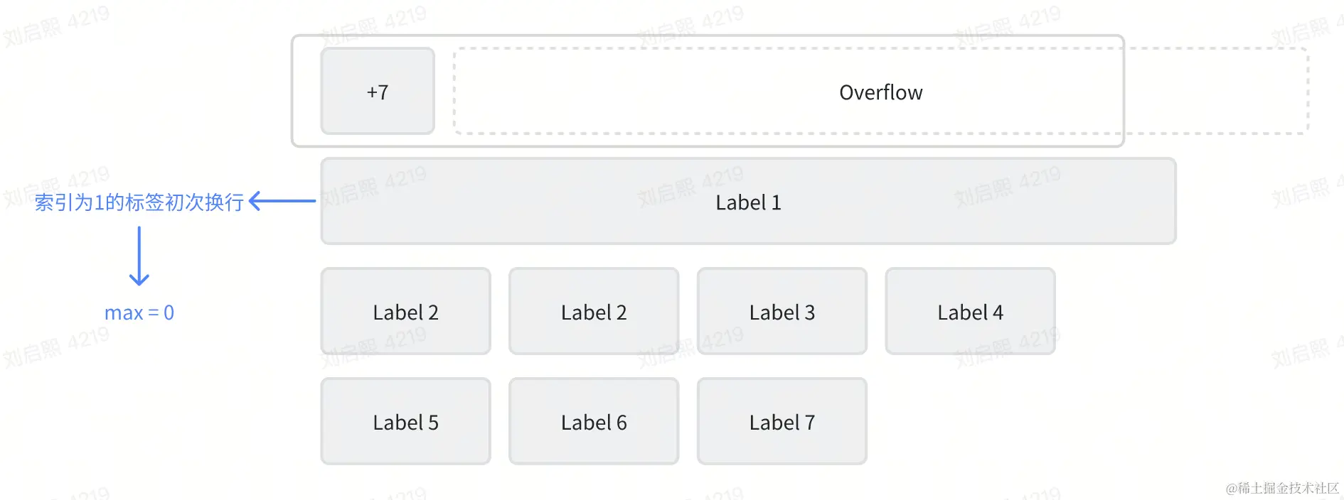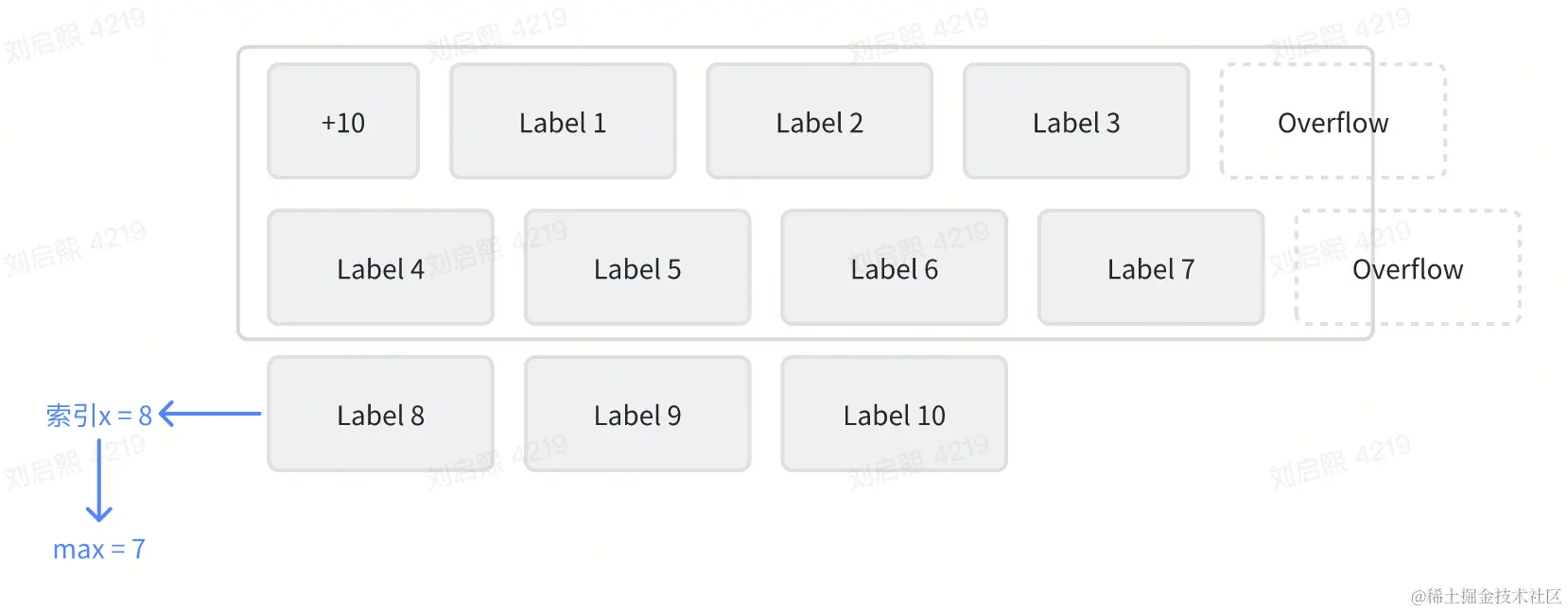 - 索引为 max:渲染一个特殊标签,内容为+(dataLength - max),hover 在弹出层中渲染剩余的标签列表;