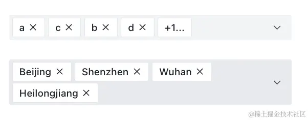 但是在实际工作中,我们会发现maxTagCount并不容易配置,因为它会随着 Select 以及其 Option 的宽度而变化,从而导致以下 2 种(容易让人强迫症发作的)情况: