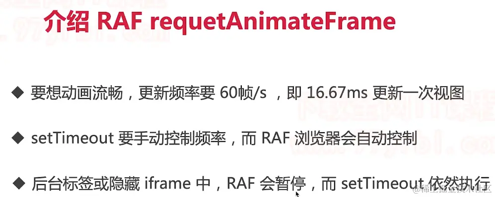RAF reques tAnimateFrame时间不需要自己控制,浏览器会配置