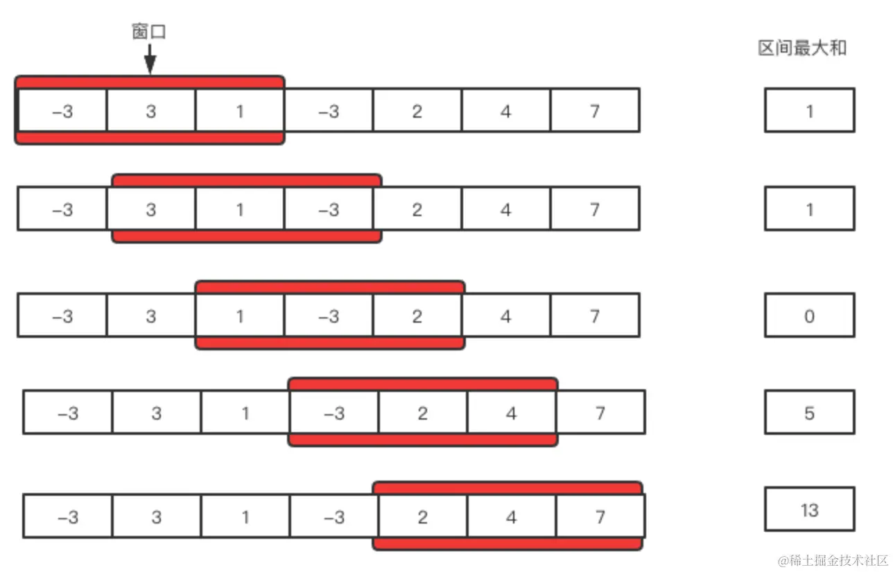 - 滑动: 说明这个窗口是移动的,事实上移动的仍然是left和right两个变量,而不是序列中的元素。当变量移动的时,其中间的元素必然会发生变化,因此就有了这种不断滑动的效果。
