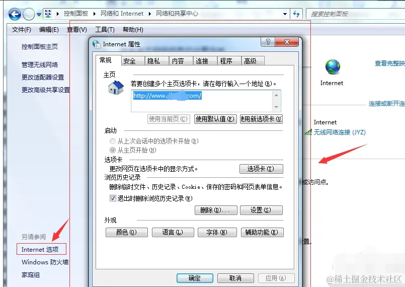 5.点击左下角的“Internet选项”进入Internet属性设置