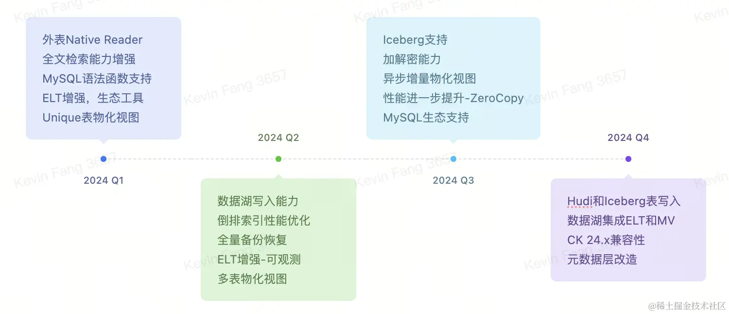 2024年 ByConity 计划每个季度一个版本 Release,发布节奏如下: