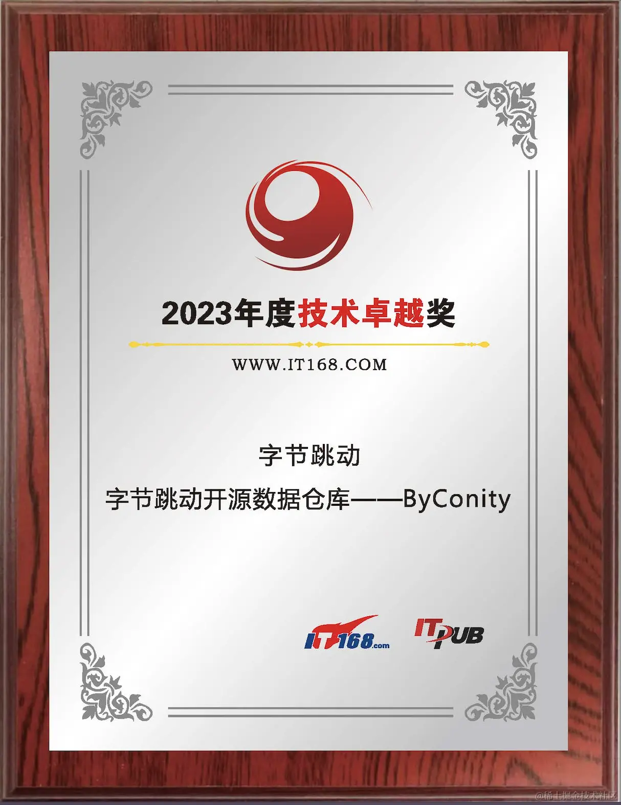 在众多开发者及合作伙伴的鼎力支持下,ByConity 社区在过去一年取得了开源圈内的荣誉。我们荣获了思否「2023中国技术先锋年度榜单—中国技术品牌影响力企业」、IT168「2023年度技术卓越奖」等开源奖项,得到了在大数据领域的影响力和专业度。