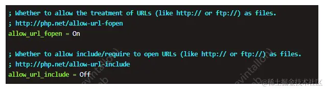 在 php.ini 中还有两个参数需要注意 allow_url_fopen 和 allow_url_include。