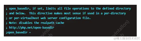 php.ini 中的参数 open_basedir 可以决定 PHP 能够访问文件系统的位置,默认是不开启该参数的,因此PHP就有权力获取整个服务器中的所有文件,当开启该参数后,就可以限制PHP的允许访问目录。