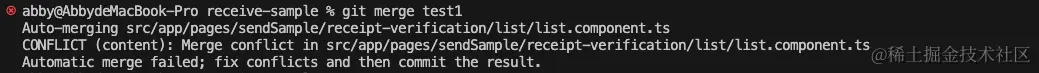 如果在两个不同的分支中,对同一个文件的同一个部分进行了不同的修改,Git 就没法干净的合并它们,在合并它们的时候就会产生合并冲突。