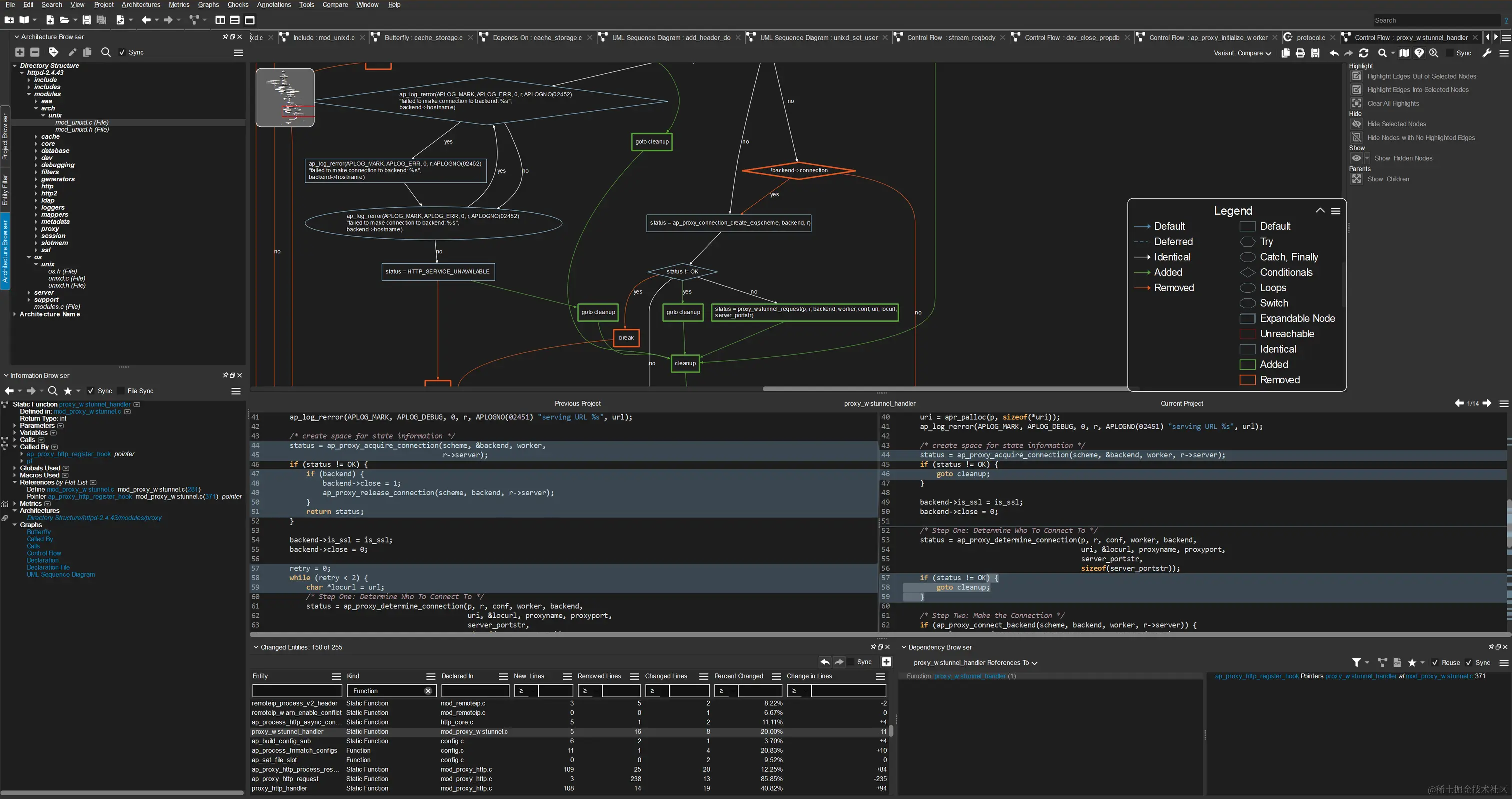 ⑤代码变更分析:快速查看两个项目代码之间的差异。